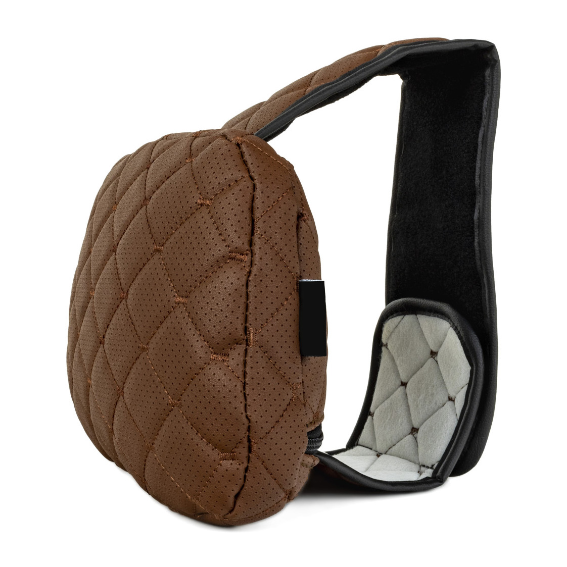 Coussin d’appui-tête réglable en similicuir, motif losange marron avec couture marron