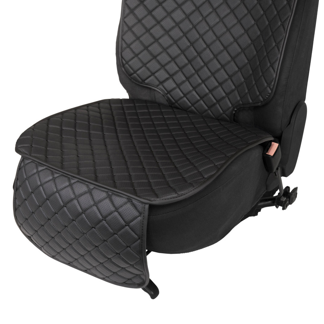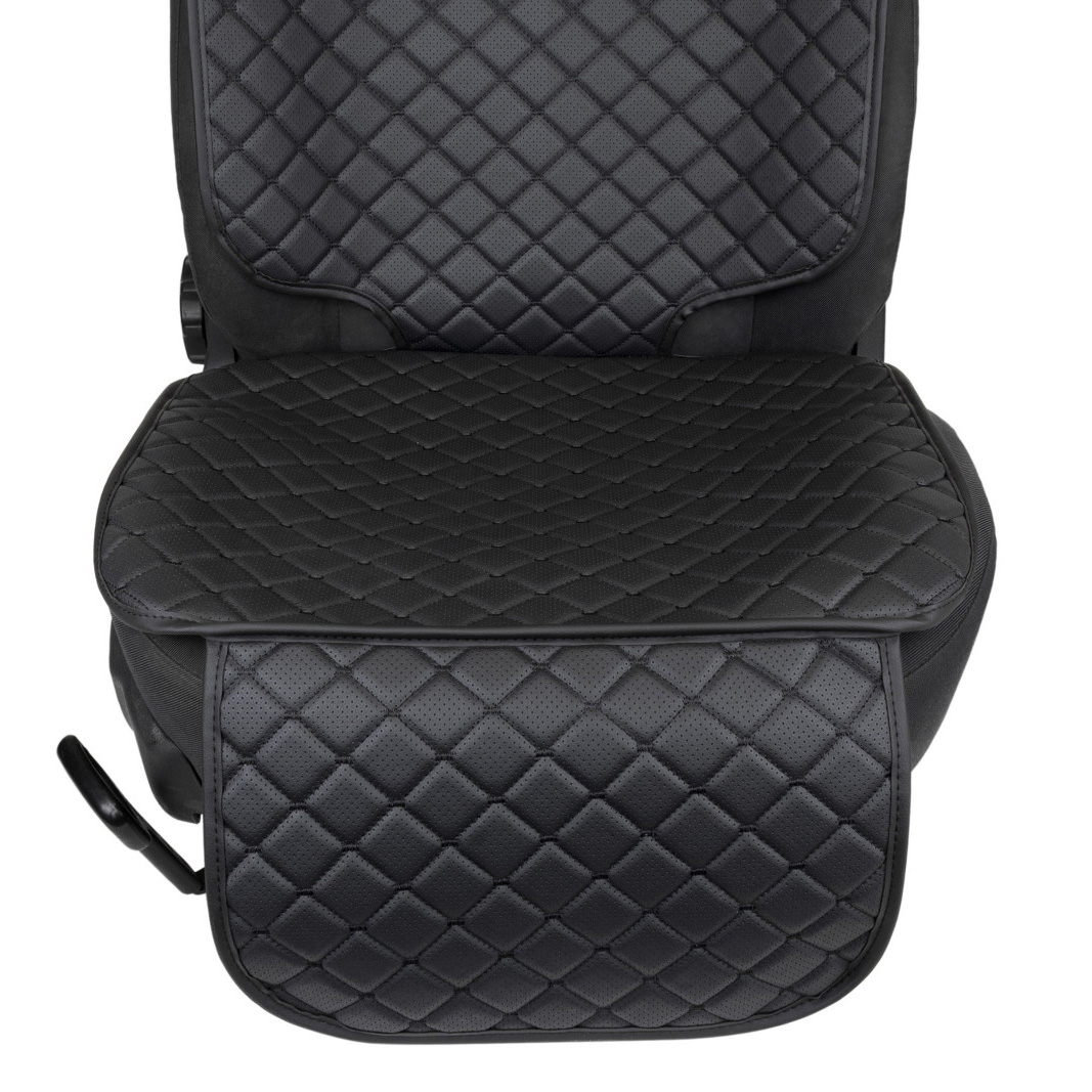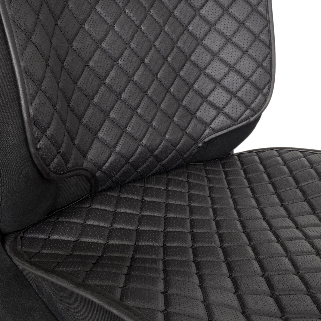 Protection pour siège auto en similicuir, motif losange noir avec couture et bordure noirs